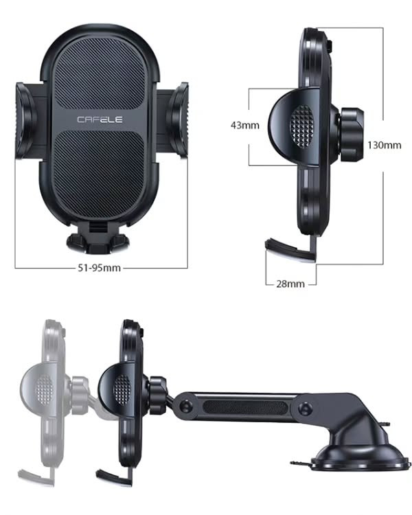 قابل نصب بر روی داشبورد و شیشه چسبندگی و استحکام بی نظیر متریال ABS درجه یک قابلیت تنظیم طول ، ارتفاع و زاویه عالی