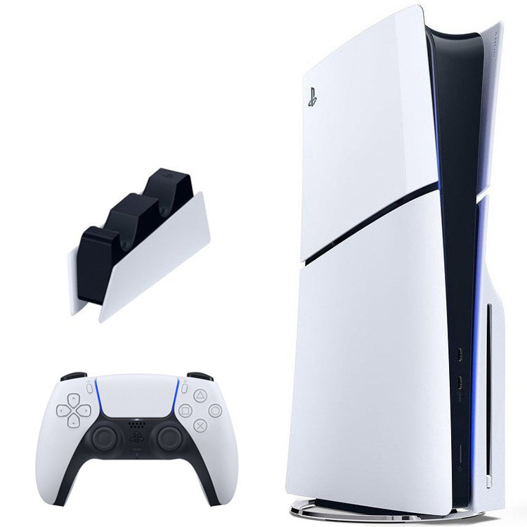 پلیاستیشن 5 با طراحی مدرن و قدرت سختافزاری چشمگیر، تجربهای بینظیر برای گیمرها فراهم میکند. این دستگاه با یک حافظه داخلی SSD پرسرعت یک ترابایتی عرضه میشود که زمان بارگذاری بازیها را به حداقل میرساند و تجربهای روان ارائه میدهد. طراحی این کنسول با خطوط صاف و مدرن، ترکیبی از پلاستیک مقاوم و فلز است که نه تنها زیبا بلکه دوام بالایی دارد. ابعاد بزرگتر پلیاستیشن 5 اسلیم نسبت به نسلهای قبلی، به خاطر سیستم خنککننده پیشرفته و قطعات داخلی قدرتمند آن است، اما همچنان با توجه به کیفیت ساخت، حمل و نقل آن آسان است. پردازنده مرکزی این کنسول، پردازنده AMD Ryzen Zen 2 با هشت هسته و فرکانس متغیر تا 3.5 گیگاهرتز است که همراه با پردازنده گرافیکی RDNA 2 سفارشی با توان پردازشی 10.28 ترافلاپس، امکان اجرای بازیها با کیفیت 4K و نرخ فریم بالا را فراهم میکند. کنترلر DualSense، با طراحی ارگونومیک و ویژگیهای پیشرفته نظیر بازخورد لمسی (Haptic Feedback) و تریگرهای تطبیقپذیر (Adaptive Triggers)، تجربهای واقعگرایانه در گیمپلی ارائه میدهد.