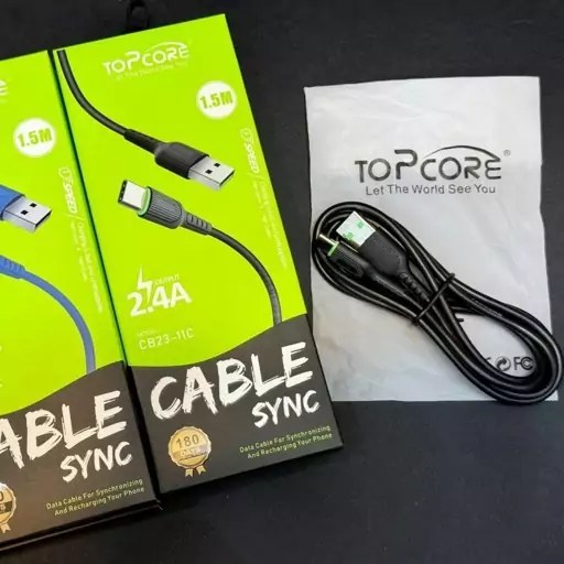 کابل شارژ 1.5متری تایپ سی topcore مدل cb23-11c فست شارژ
